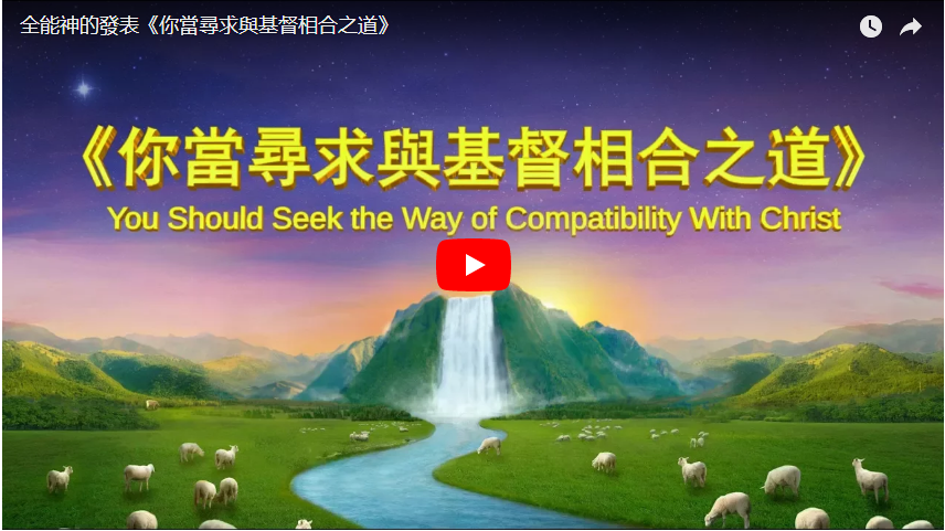 全能神說:「你們只追求與渺茫的神相合,只追求渺茫的信仰,卻並不與基督相合,你們有這樣的惡行不一樣與惡人一起得到應有的報應嗎?那時你們就會知道凡不與基督相合的沒有一人能逃出那忿怒的日子,你們也會知道與基督為敵的人將得到什麼樣的報應。那日來到,你們的信神得福夢、你們上天堂的夢都會破滅的,而那些與基督相合的人則不然,他們雖然失去了很多,雖然受了許多苦,但他們得到了我施與人類的全部產業,最終你們將會明白只有我是公義的神,只有我能將人類帶入人類美好的歸宿之中。」 觀看視頻》